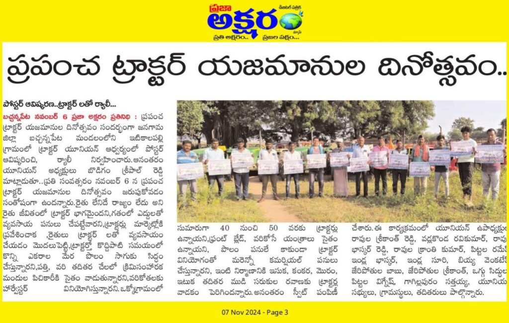 WTOD news article of Itkyalapalli Village, Bachannapet Block, Jangaon District.